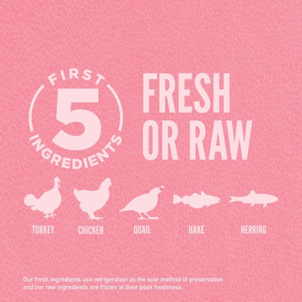 - The first 5 ingredients are fresh or raw2 poultry and fish ingredients.
